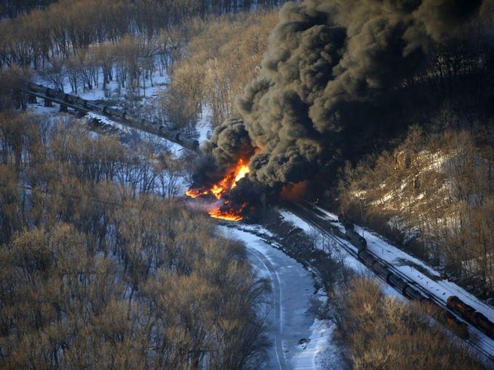 "The only thing more mind-boggling than three such accidents in three weeks is the continued lack of action by the Obama administration to protect us from these dangerous oil trains," declared Mollie Matteson, a senior scientist at the Center for Biological Diversity, in a statement on Friday morning. "The government has the authority to take immediate action to address this crisis - which puts homes, waters and wildlife at risk - and yet it has sat back and watched."