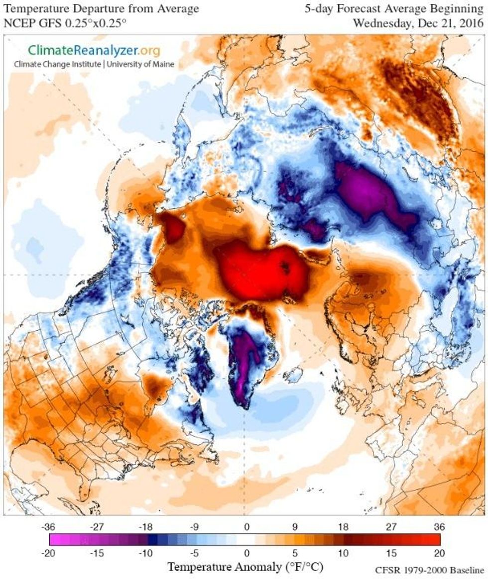 The Washington Post also notes: "For the second year in a row in late December and for the second time in as many months, temperatures in the high Arctic will be freakishly high compared to normal."