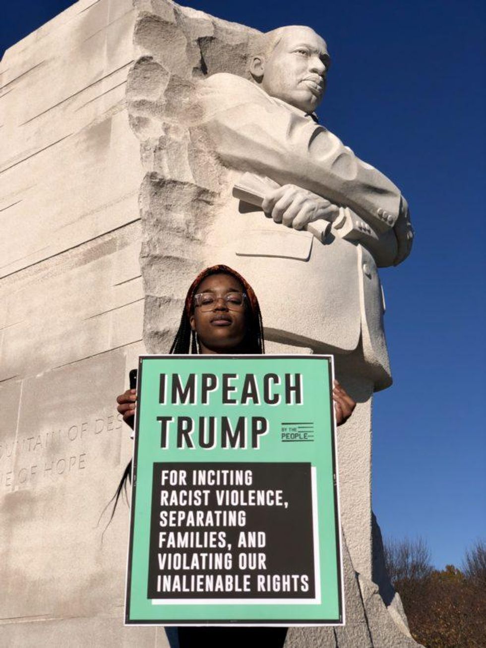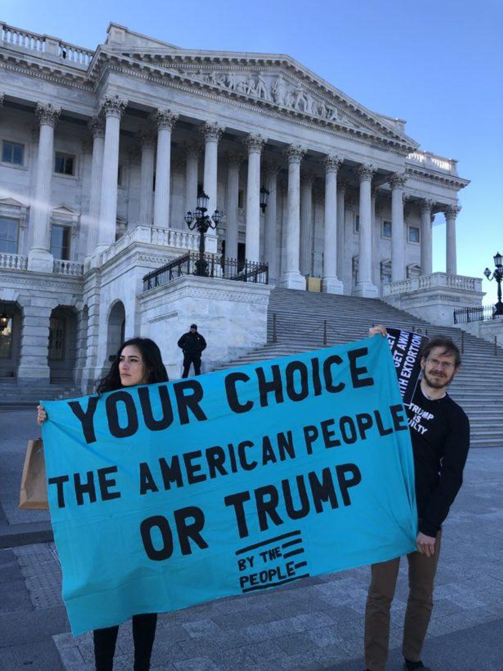 While this is clearly a scary and dangerous moment, there are also many reasons to be hopeful and feel powerful. I say this as someone who has been organizing in the trenches of impeachment with By the People for the past year and a half. Despite the Senate voting to cover up Trump's crimes, our movement for impeachment secured critical victories that will propel us forward in the longer battle for American democracy. Over the course of this campaign, we built an American majority across race, gender, class, generation, geography, and political party in support of impeaching and removing Trump from office. Through months of sustained grassroots pressure and hundreds of mobilizations, we won an inquiry, got two articles, and impeached this dangerous president in the House of Representatives -- all by making it a political necessity for them to act. Then, after nearly three years of unaccountability, we forced the Senate to put Trump on trial for coercing Ukraine to interfere in our elections on his behalf, and secured the first bipartisan vote in favor of convicting a president in U.S. history.