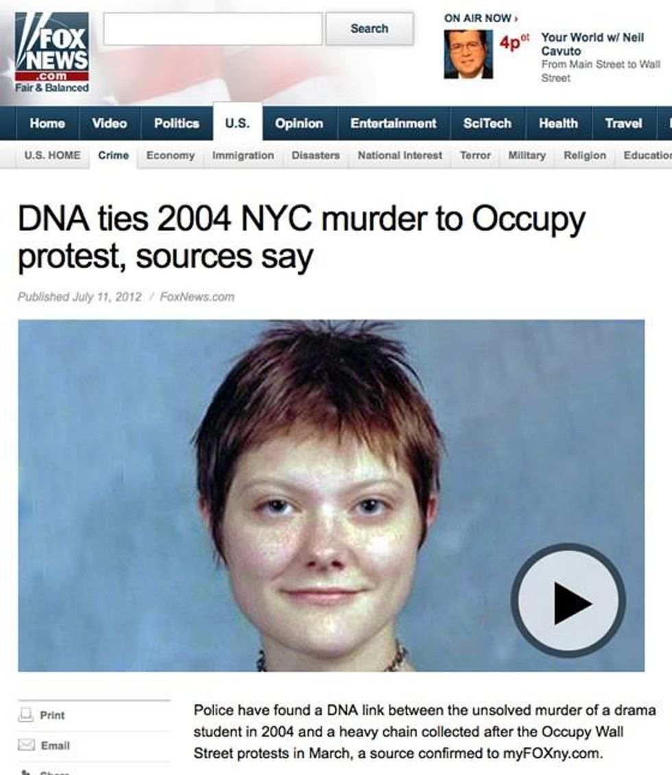 Corporate media outlets spent Wednesday headlining shocking news: the New York Police Department had found DNA that linked the Occupy Wall Street protests to an unsolved 2004 murder.