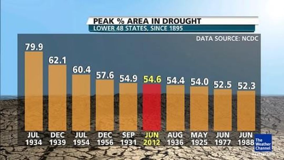 The current drought actually covers more area than the famous 1936 drought, though other droughts in the Dust Bowl years - particularly the extreme drought of 1934 - still rank higher.