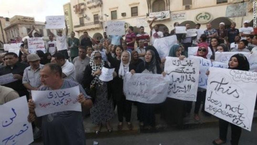 (Al-Jazeera): AJ's Hoda Abdel Hamid, reporting from Benghazi, said: "There is a lot of tension in Benghazi people are confused, they want to protest, but after what took at the US consulate, people are apprehensive, Libyan authorities still believe it was a planned attack at the embassy".
