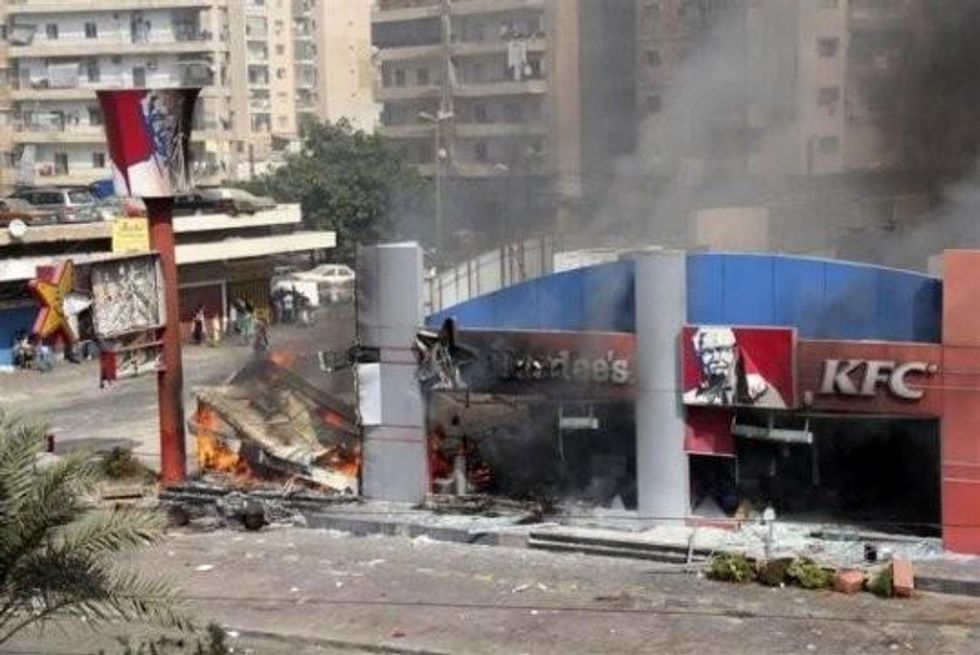 Finding themselves unable to storm the Serail, the protesters headed some 500 meters down the road to a KFC/Hardee's outlet, setting the establishment on fire. They also set four delivery mopeds ablaze.