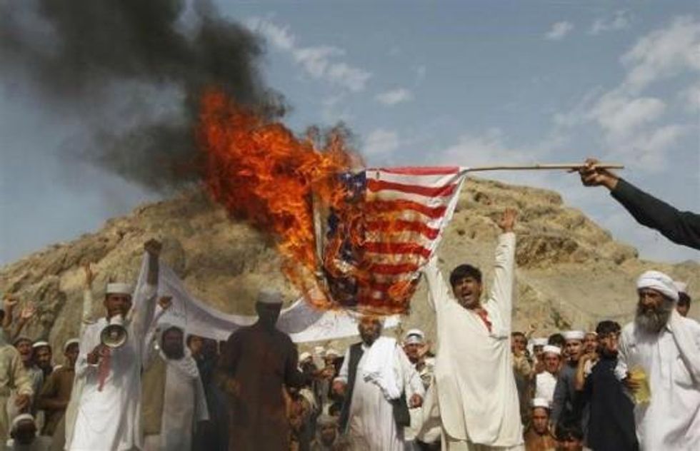 (Associated Press): Hundreds of Afghans -- some shouting ''Death to America'' -- burned the U.S. flag and an effigy of President Barack Obama on Friday during a protest against an anti-Islam film outside the eastern city of Jalalabad. [...]
