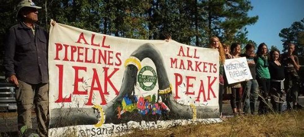 Ten days ago, a group of over thirty national and international environmental groups, voiced their support for the relatively small group of protesters in east Texas, saying: "If we are determined to prevent the pursuit of extreme energy from destroying our communities, natural systems and climate, then peaceful, yet confrontational, protests like the Tar Sands Blockade are necessary actions for change."