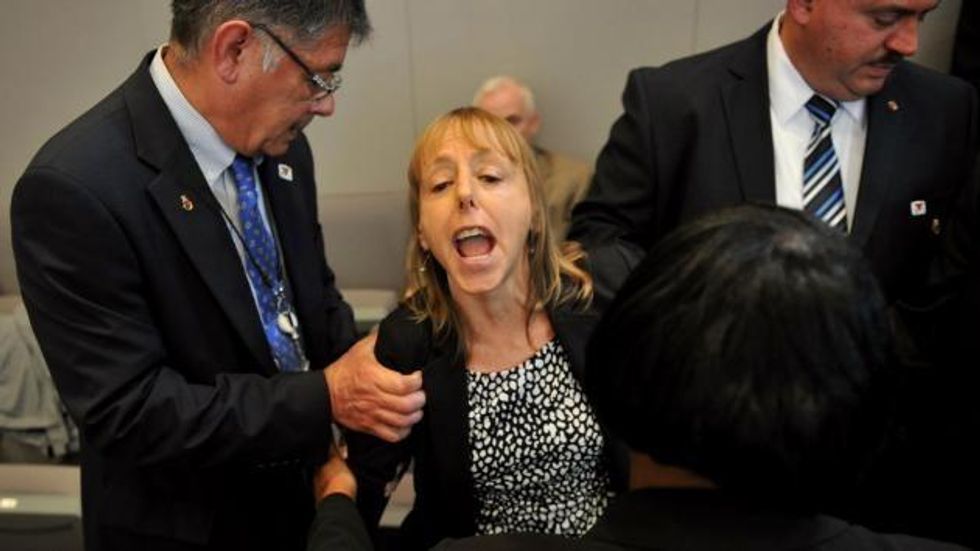 "I must say, I do really appreciate that I live in a country where if you interrupt the president you don't get beaten and tortured and thrown inside a prison for a year," she added.