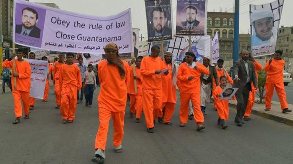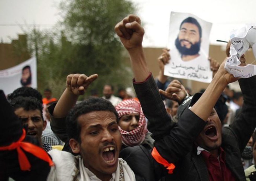 The protesters, demanding the immediate release of the 84 Yemeni prisoners still held in Guantanamo Bay who have never been charged with a crime, marched through Sanaa chanting "Freedom, freedom for the detainees!" Many wore orange jumpsuits similar to those warn by inmates in Guantanamo.