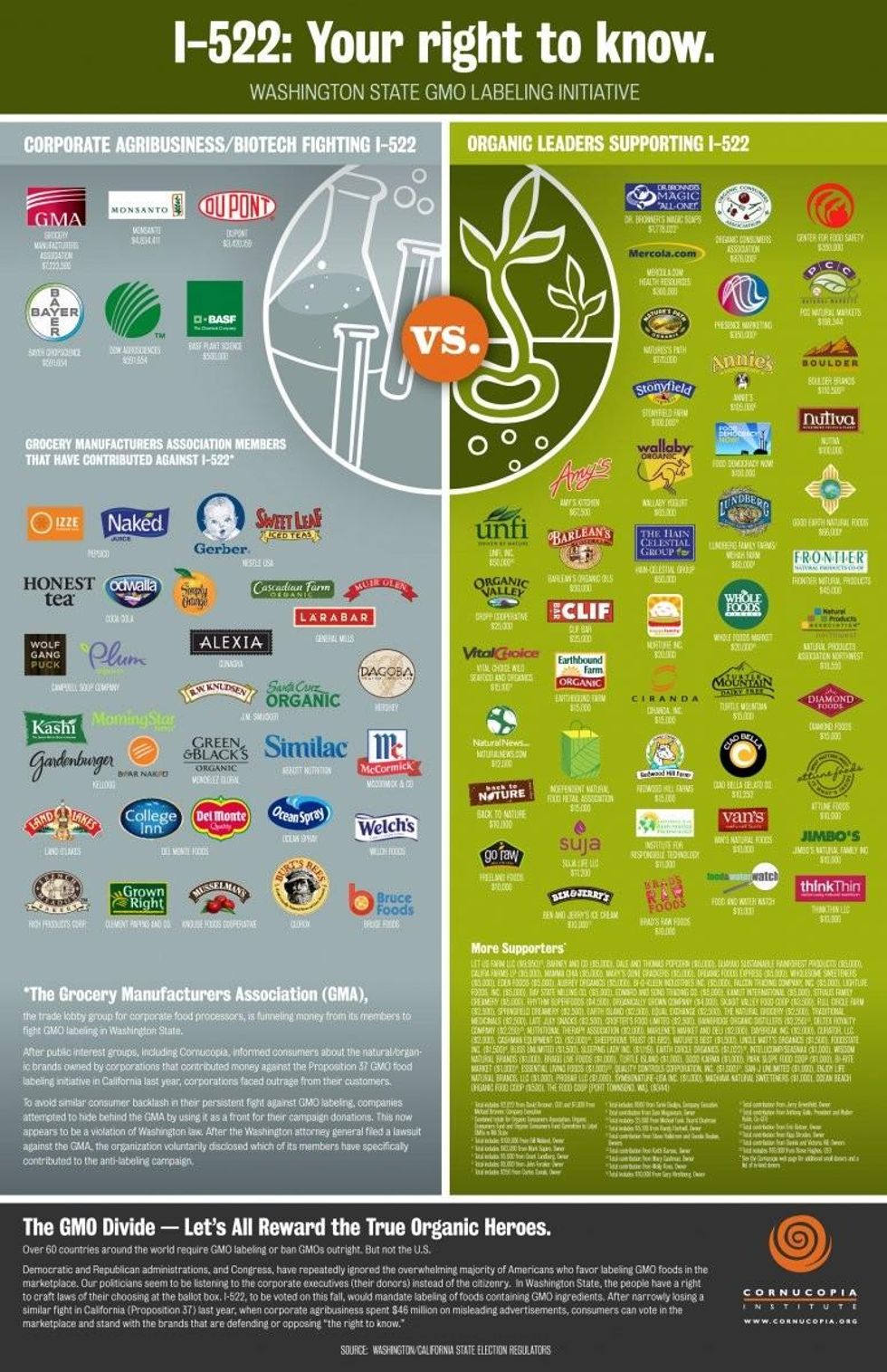 As was expected, major food corporations and GMO users such as PepsiCo, Nestle USA, The Coca-Cola Co. and General Mills, among many others, had secretly donated millions of dollars to the GMA campaign to stop Washington Initiative 522, which would require the labeling of all products containing GMOs if passed in November.