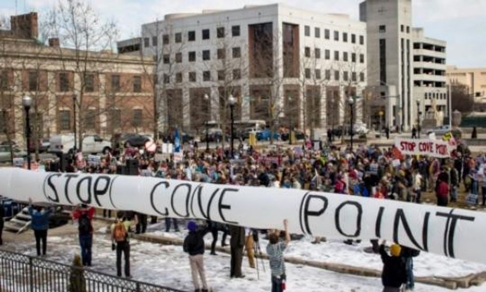 "The controversial $3.8 billion Cove Point project, proposed by Virginia-based Dominion Resources, would take gas from fracking wells across the Appalachian region, liquefy it along the Chesapeake Bay in southern Maryland, and export it to Asia," writes the Chesapeake Climate Action Network, who has helped lead the charge against the project.