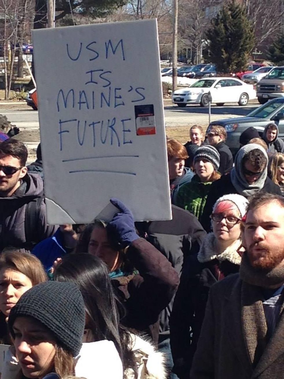 USM students say this is especially devastating at a university that serves a poor and working class population, including many non-traditional students, parents, and workers. "Because I grew up blue collar, I don't deserve a classics degree?" asked USM student Brittany Goldych at a rally on Monday.