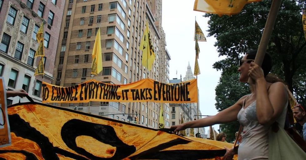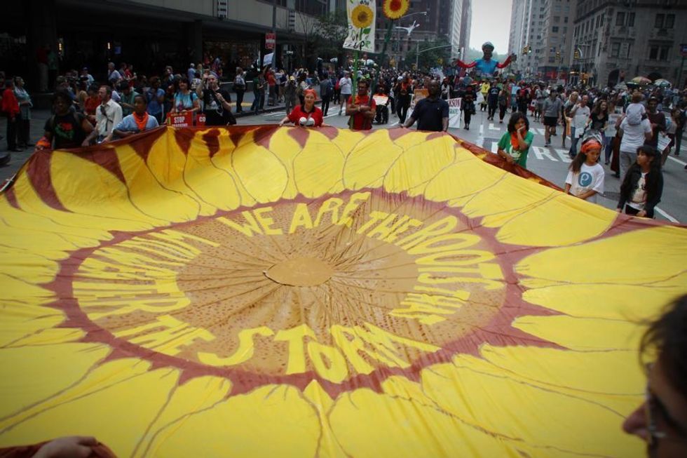 As heads of state, corporate leaders, and token civil society organizations meet behind the UN Climate Summit's closed doors Tuesday, the streets continue to resound with the messages of the 400,000 people who marched on Sunday, the thousands who flooded Wall Street, the ongoing People's Climate Justice Summit, and the workshops, teach-ins, and rallies still filling New York.