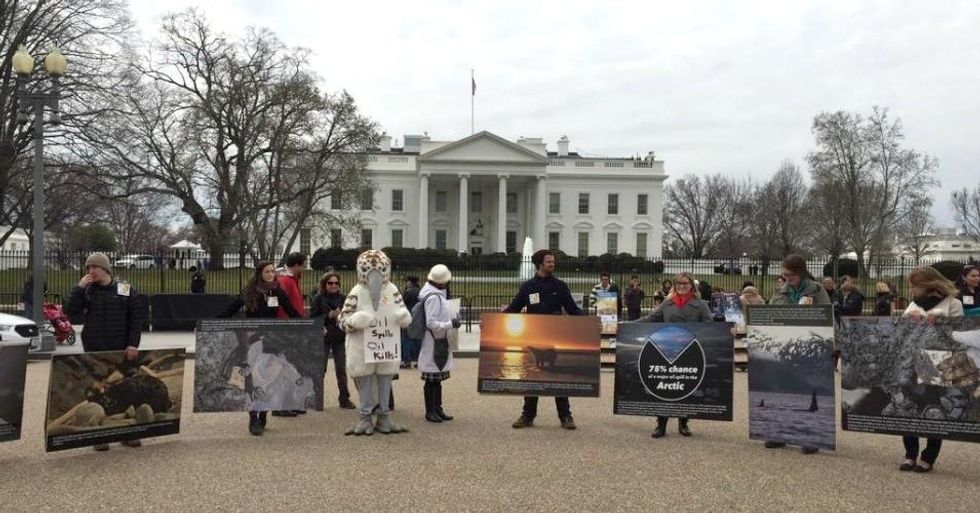 Marking 26 years since the Exxon Valdez ran aground spilling as much as 38 million gallons of oil into the Port William Sound in Alaska, activists on Tuesday protested the Obama administration's continued support for Arctic oil exploration.