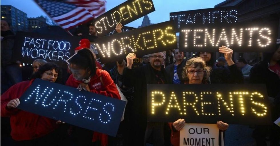 The groups stood behind a new report--titled Putting Families First: Good Jobs for All (pdf)--which lays out a plan to guarantee good wages and benefits while creating new jobs to sustain both families and communities with new spending on infrastructure, education, childcare, and a clean energy future. Commissioned by the Center for Community Change and written by Dorian T. Warren, an associate professor at Columbia University and a Roosevelt Institute fellow, the document acts as a blueprint for political action and structural change.