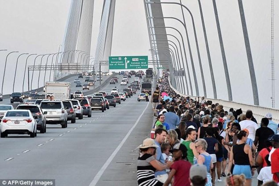 Estimates put the number of people between 15,000 and 20,000—significantly more than the 3,000 or so originally expected—who walked across the Arthur Ravenel Bridge, which spans the Cooper River and connects the city of Charleston to the suburb of Mount Pleasant. Individuals and families marched while people embraced, sang songs, and held signs expressing their love for the community and one another.