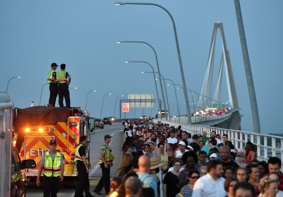 According to the Huffington Post, the crowd stretched "more than two miles from the town of Mount Pleasant to the city of Charleston. Observers on the bridge, and thousands more at the base, joined hands to create a 'unity chain,' then held a moment of silence that lasted five minutes in honor of the fallen." As the Associated Press recounts, when the marchers from each side met in the middle of the bridge, the Civil Rights-era song was clapping and singing, "This Little Light of Mine."
