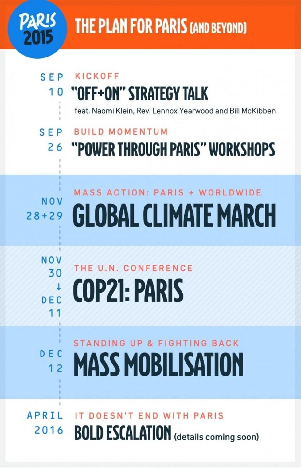 According to McKibben, 350 and its allies are "going to use mass action and divestment to keep turning off dirty energy, and turn on cheap, clean renewable power all over the world." Their roadmap, he said, leads beyond "the Paris talks and straight to one of the biggest days of resistance we've ever engaged in."