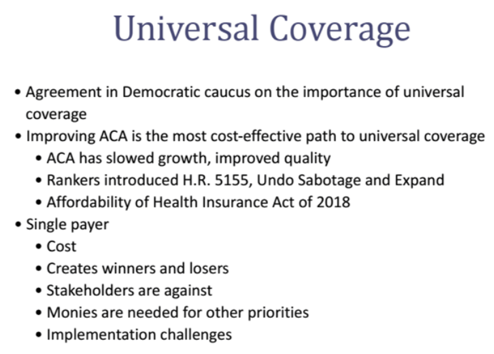 In a slide presentation obtained by The Intercept, Primus parroted some of the most common and easily debunked objections to Medicare for All pushed by its opponents--such as the policy's supposedly high cost--and argued that improving the Affordable Care Act (ACA) "is the most cost-effective path to universal coverage":