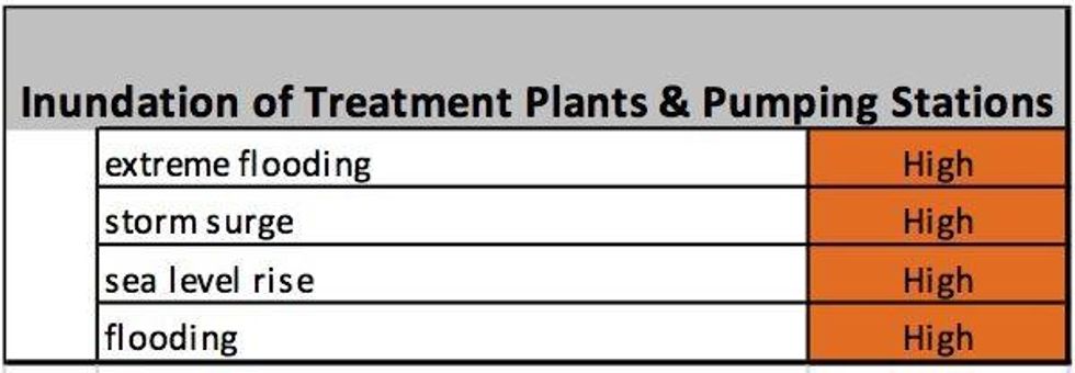 The growing danger of mega-flooding due to extreme weather is not a new issue in New Jersey. Power outages, storm surges and flooding are well known vulnerabilities to water infrastructure. For example, a 2010 report by the Delaware Estuary Partnership, entitled "Climate Change and the Delaware Estuary," found high vulnerability of sewage treatment plants and pumping to these events: