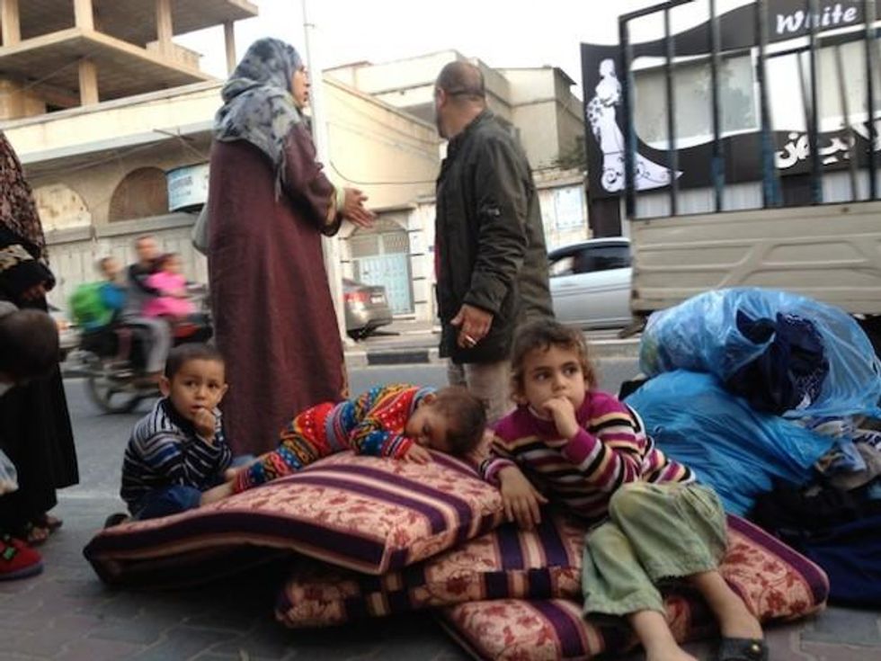 More than 10,000 Gazans have been displaced according the United Nations. Thousands took refuge in 13 UN-run schools, many of them fleeing northern Gaza on Tuesday night after Israeli warplanes dropped swarms of leaflets on the area ordering residents to evacuate their houses or face an impending attack.
