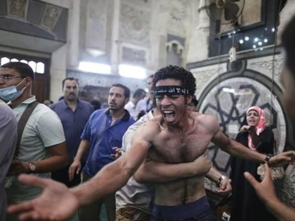 I was struck yesterday by the face of one middle-aged man carried by five paramedics into the side door of the mosque. Blood was dribbling down his face on to the floor and pouring off his torso. His eyes were open and he stared at the doctors, the faces no doubt blurring past him on what may have been his last journey in life. And a few cameras clicked and a man said that God was great and the haunting face of the living dead was gone. And this is Egypt, two and a half years after the revolution that was supposed to bring freedom, justice and dignity. Forget democracy for the moment, of course.