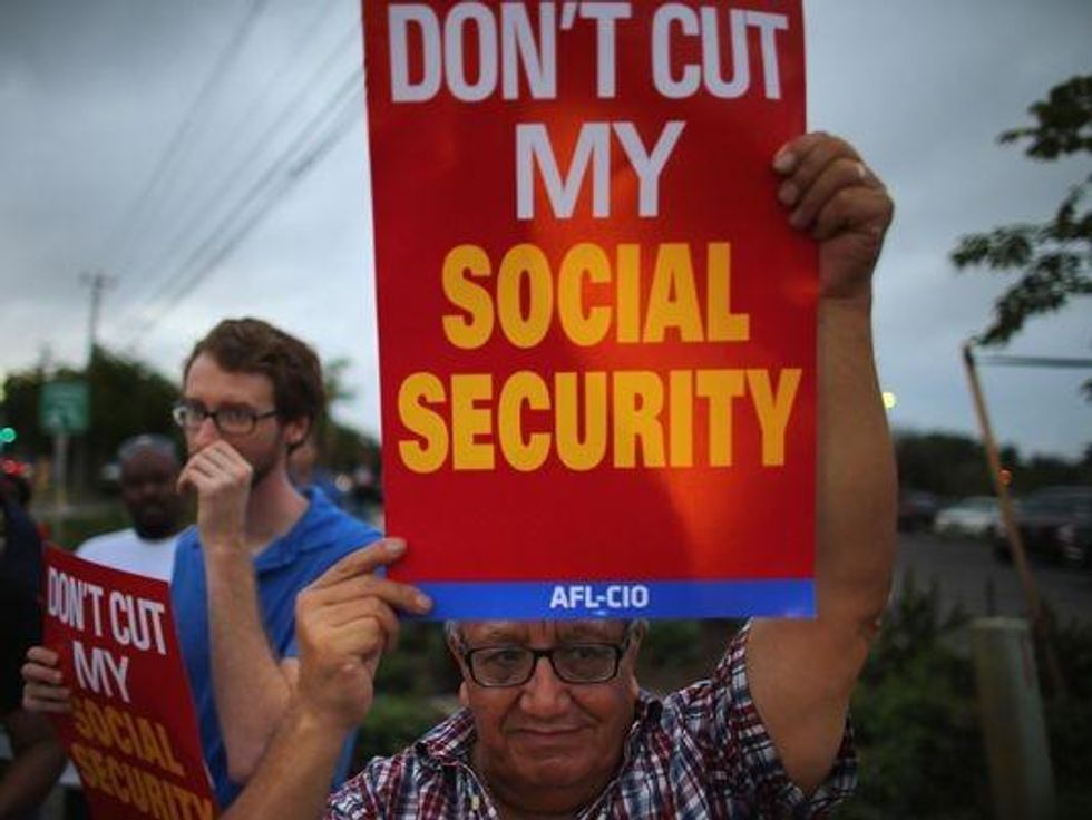Social Security's critics -- primarily corporate America and the politicians and "think" tanks it bankrolls -- argue that the US "can't afford" even the current Social Security program. As Peter Peterson, the dour Wall Street billionaire and founder of the Blackstone Group, likes to put it, the program, along with Medicare, is "bankrupting" the country, and unless "entitlements" are cut America will go bust. Some like to point to the 12.4% FICA payroll tax that workers and employers have to pay on a 50/50 basis to fund Social Security, and argue that it imposes an intolerable burden on American business and cannot be raised without further damaging the US economy.
