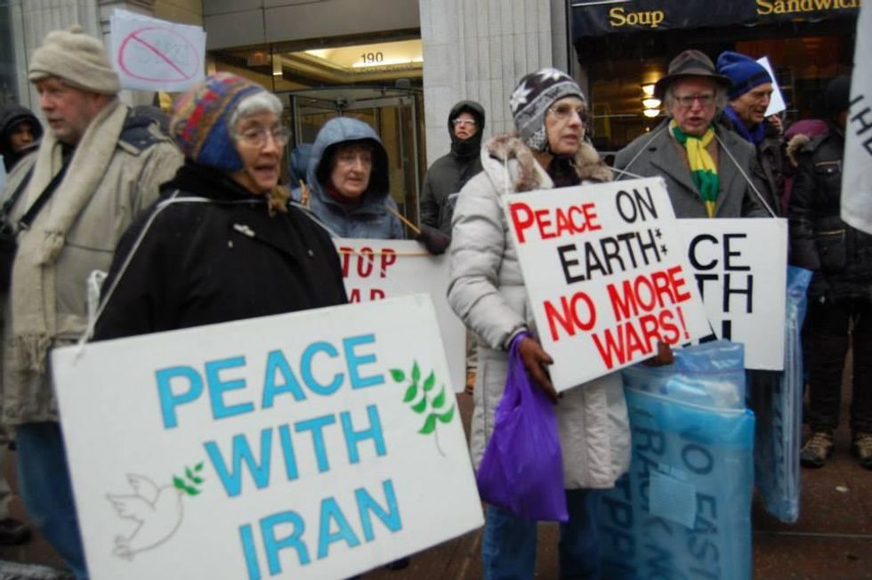 In the midst of the holiday lull, 48 hours' notice, and a climate change polar vortex winter, IVAW Chicago was able to turn out two dozen protesters to a frozen New Year's Day picket at Senator Kirk's office with the message of "Don't Ruin the New Year with War on Iran."