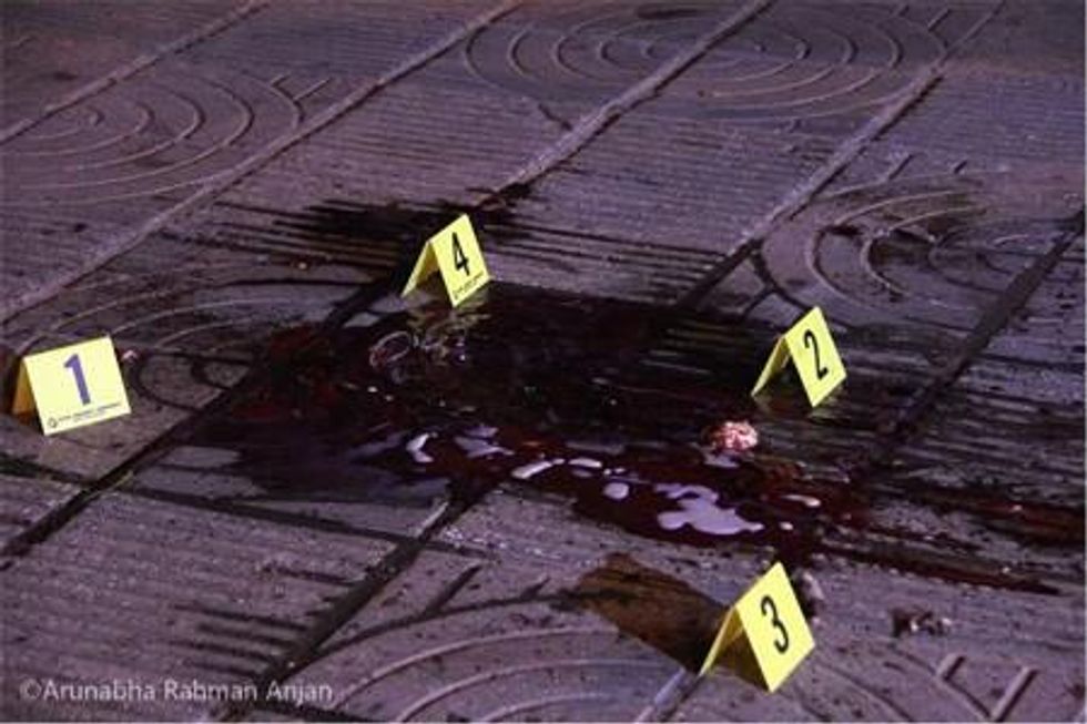 A pair of glasses, a pen, and blood and brains surround the limp lifeless body of Abhijit Roy, clad in a red Punjabi, the body of the curious and courageous mind attacked and hacked, left for dead in front of spectators and police, none of whom came to his rescue while he along with his wife was being attacked with a cleaver just outside the Ekushe Book Fair, a public venue. A day later, his father Professor Ajay Roy would hand over the body for medical research, forgoing religious rites, and thus honoring his son's lifelong quest for rationality and science.