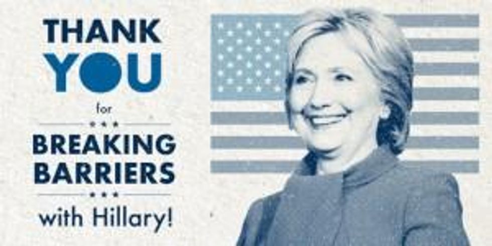 The project celebrates Clinton's ability to break down barriers. This is another example of the campaign manipulating the language of intersectionality to win over voters. Yet, on the other hand, it is true: Clinton is breaking down barriers for corporations to influence governmental policy.