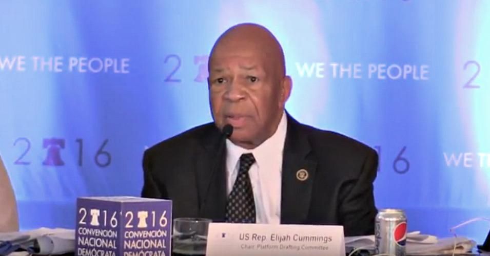 Representative Elijah Cummings speaking during a meeting of the Democratic Party Platform Committee. (Screenshot via DNCC)
