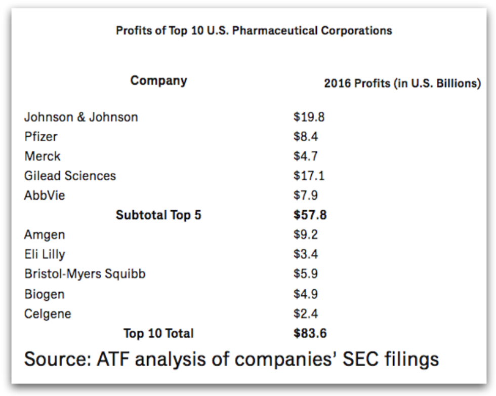 Do America's drug makers deserve a $28 billion tax cut over 10 years, when the profits of the top 10 companies topped $83 billion last year alone, with the top 5 pocketing nearly $58 billion?