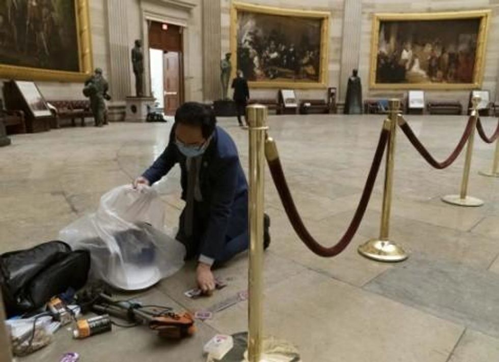 New Jersey's Democratic Rep. Andy Kim, first-generation American, son of Korean immigrants and Rhodes Scholar, helps clean up the Capitol. Twitter photo