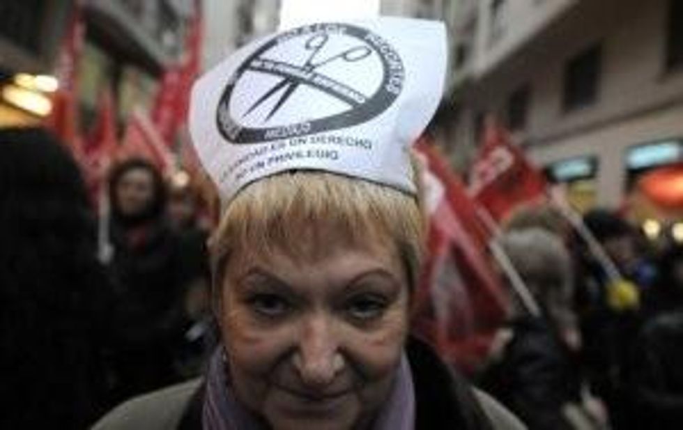 Agence France-Press reports tens of thousands of Spaniards marched to protest regional austerity cuts in eastern Spain on Thursday: