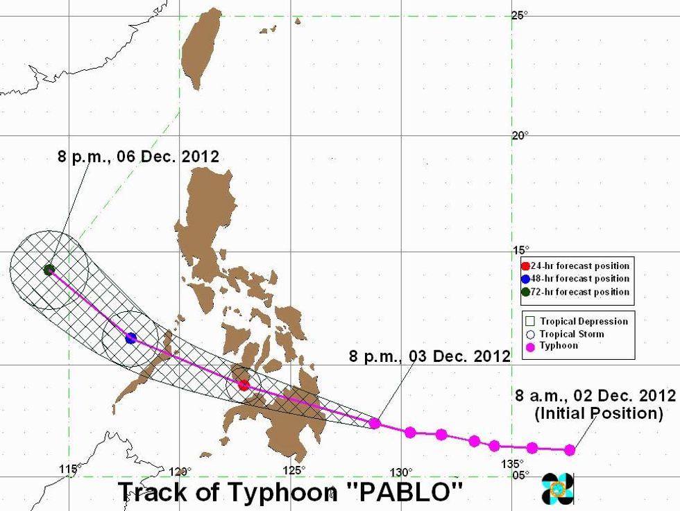 Weather Underground co-founder Dr. Jeff Masters writes that the "extremely dangerous" storm "is following a similar track to last year's Tropical Storm Washi, which hit [the southern Philippine island of] Mindanao on December 16, 2011 with 60 mph winds and torrential rains. Washi triggered devastating flooding that killed 1268 people. Washi was merely a tropical storm, and Bopha is likely to hit at Category 4 or 5 strength, making it the strongest typhoon ever recorded in Mindanao."