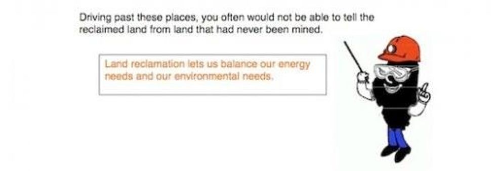 They also singled out the use of a cartoon figure that told children that land reclamation efforts after strip-mining return the land "the way it was or better than before mining."