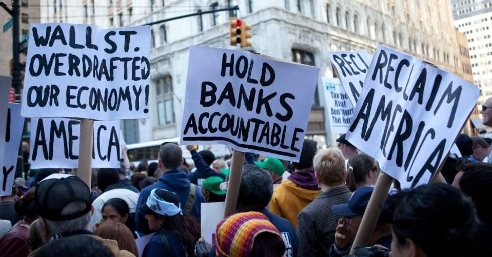 Wall Street banks are raking in record profits, but that's not stopping Senate Republicans--with the help of nine of their Democratic colleagues--from attempting to ram through an "insane" piece of legislation that would scrap a number of key post-financial crisis regulations, "line the pockets of bank executives," and leave consumers more vulnerable to predatory corporations.