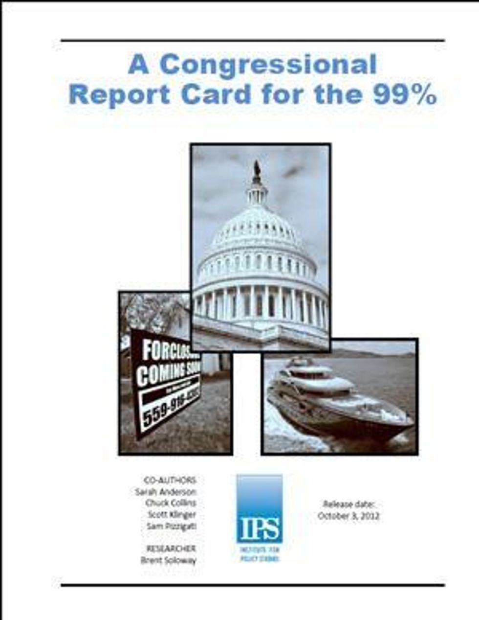 The Report Card also graded politicians for their commitment to reducing inequality and boosting the 99 percent. The report's "Honor Roll" gives an A plus grade to 5 members of the U.S. Senate and 14 House members, including Senators Sherrod Brown (D-OH), Dick Durbin (D-IL), Al Franken (D-MN), Bernard Sanders (VT-I) and Sheldon Whitehouse (D-RI).