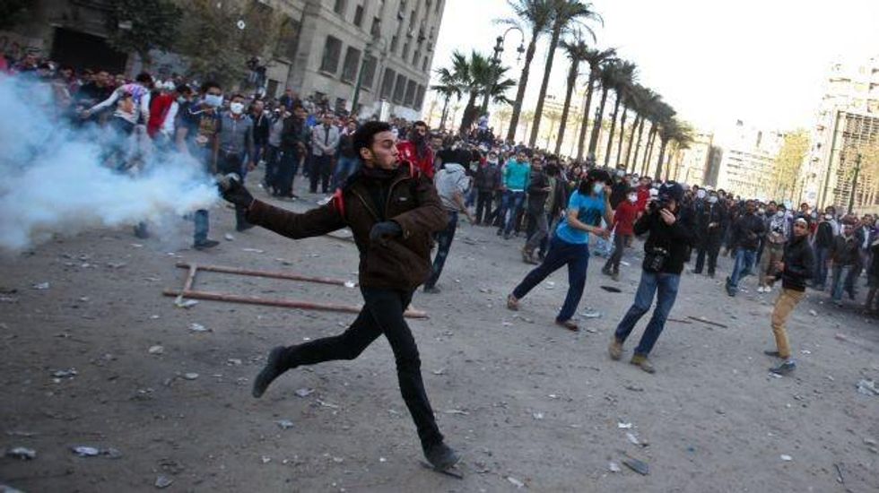 In Cairo, there were several centers of protest, including the iconic Tahrir Square downtown, the presidential palace, the Maspero area around the state television station, and October 6 bridge linking the downtown area with neighborhoods beyond the Nile. There were active clashes between protesters and police on October 6 bridge for much of Friday. The army and state security forces used tear gas against the protesters. A youth anarchist group, the "Black Bloc," which dressed themselves in black, including masks, attempted to set fire to the presidential palace with Molotov cocktails before being dispersed with heavy tear gas barrages. But most of the Cairo protests, despite provocation by security forces, remained peaceful.