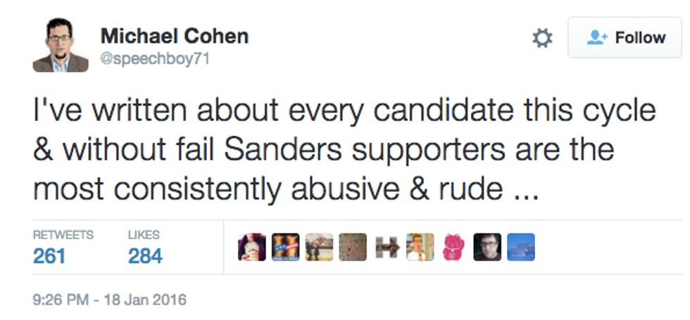 STAGE 4: Smear the candidate and his supporters with innuendos of sexism and racism by falsely claiming only white men support them (you like this candidate because he's white and male like you, not because of ideology or policy or contempt for the party establishment's corporatist, pro-war approach).