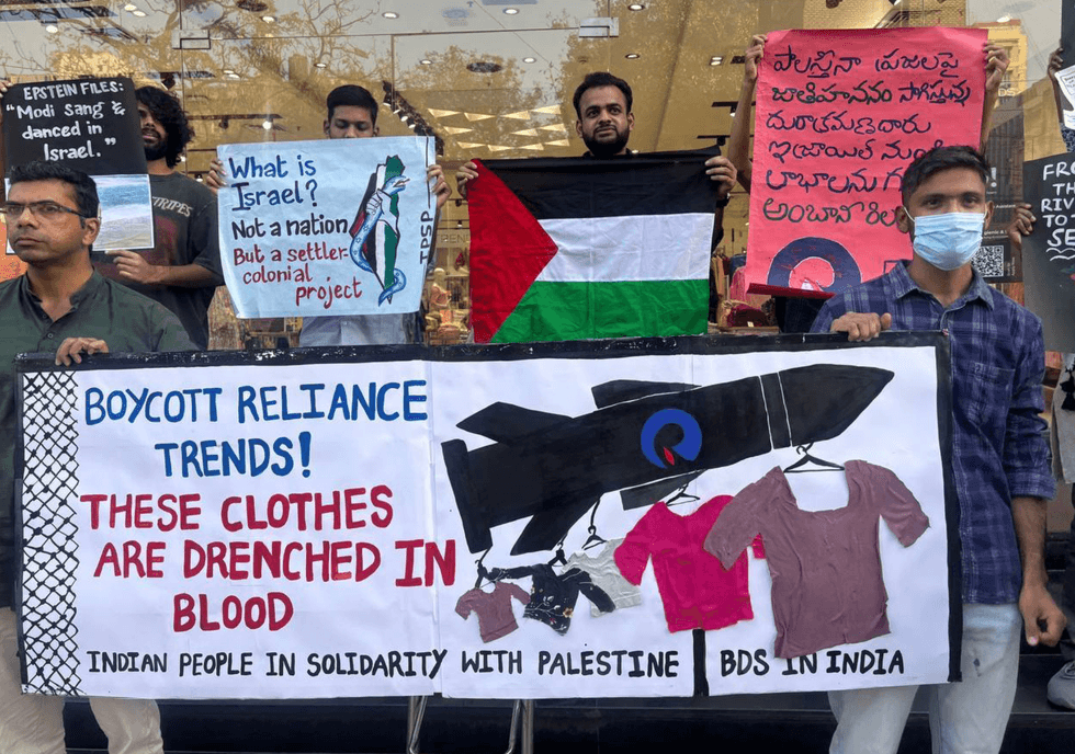 “At a time when the ceasefire is being used as an excuse to bomb and vaporize Palestinians and occupy Gaza," the groups said, "the Indian government is choosing to stand with genocidal Israel and its imperialist masters like America and is working overtime to benefit the corporations from the occupation of Palestine."