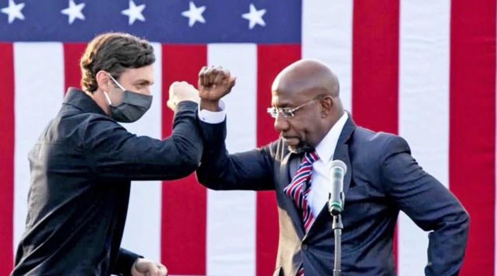 Wow. Jon Ossoff, the Rev. Raphael Warnock, Stacey Abrams, the legacies of John Lewis and Martin Luther King Jr., the hard work of thousands of black women who called and canvassed and organized - they all, according to the New York Times' painfully careful language, have "pretty likely" won the Senate. In what sounded a lot like a victory speech shortly after midnight, Warnock cited the "historic moment" and the "improbable journey" that got him there, paying tribute to his mother Verlene's "82-year-old hands that used to pick somebody else's cotton." If Warnock wins - an event deemed "very likely" - he will, somewhat astonishingly, become the first Black senator representing Georgia in the state's history, and only the second Black senator from the South since Reconstruction. He and Ossoff will also become what many hope will be standard bearers for a broader Democratic coalition of the future: Ossoff is a young, white, Jewish, documentary filmmaker; Warnock, with a doctorate in philosophy and a down-home humor, is the leader of Atlanta's esteemed Ebenezer Baptist Church, the spiritual home of Martin Luther King, Jr. known as both Black America's Church and America's Freedom Church. As such, a sense of social justice history is strong in him. As the home state of MLK, he's argued, Georgia "has long been the tip of the spear for change in America." Please, let it be.