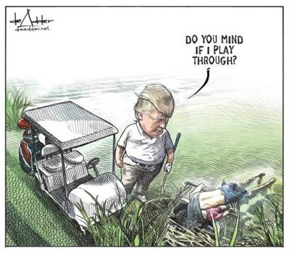 Golf/Trump detached from reality. Twitter illustration.