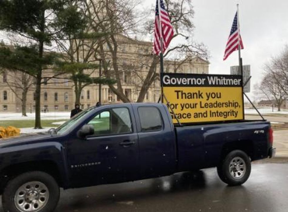 Lorence Wenke, a former GOP state rep who served with Gov. Whitmer in the state legislature, came to Lansing to show his support. Twitter photo