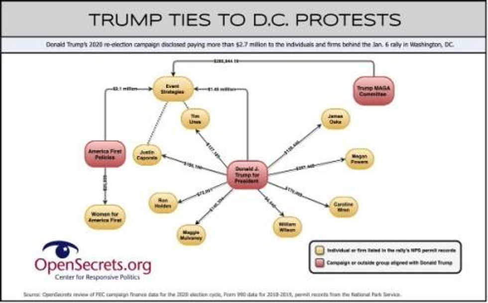 What's known to date: At least eight people listed on the rally permit granted by the National Park Service worked for Trump's campaign. They include Maggie Mulvaney, niece of Mick, whose title is director of finance operations and who's listed as the rally's "VIP Lead." Rally personnel also listed on the permit include "VIP Advisor," operations associate, production manager and stage manager - the latter two roles filled by the owners of Event Strategies Inc., the largest recipient of Trump campaign funds with a payday of $1.7 million. Thus begins a tangled web of ongoing dealings with dark entities like America First Policies and American Made Media Consultants LLC, Trump's spending clearinghouse, which routed over $759 million to as-yet-unknown recipients. With the riot's ominous backstory still emerging, Dems on the Senate Finance Committee have begun asking the IRS to investigate the tax-exempt status of dark money groups involved in rally planning, part of a larger probe into tax-exempt groups. That spotlight on Trump et al will only get brighter in the lead-up to a Senate impeachment trial slated for Feb. 9. It probably didn't help when Chuck Schumer, providing comic relief with an inadvertent, smirking self-own, declared Trump must be held accountable for inciting "the erection." Cue bad puns about uprisings, hard-hitting analysis, and sedition that cannot stand. This trial outta be...something.