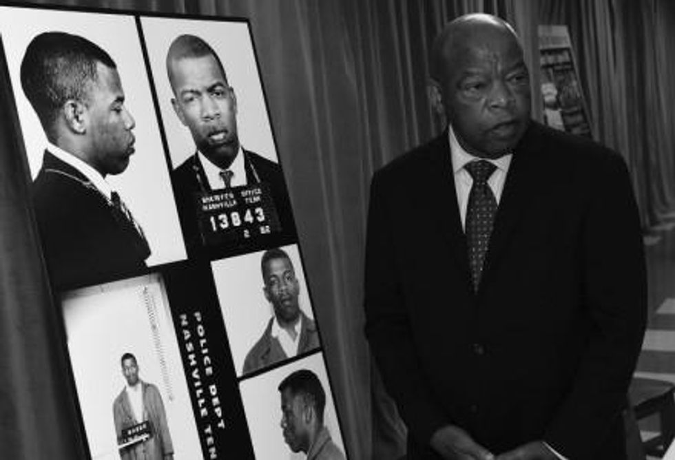 Nashville arrest records unearthed from a 1963 lunch counter sit-in as chairman of SNCC. They were presented to Lewis in an emotional ceremony when he visited the city to get an award for his acclaimed autobiographical graphic novel trilogy March, which also won a 2016 National Book Award for Young People's Literature. Getty Image