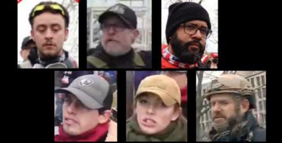 Proud Boys and Girl, clockwise, William Chrestman, Christopher Kuehne, Ryan Ashlock, Louis Enrique Colon, Felicia Konold, Cory Konold