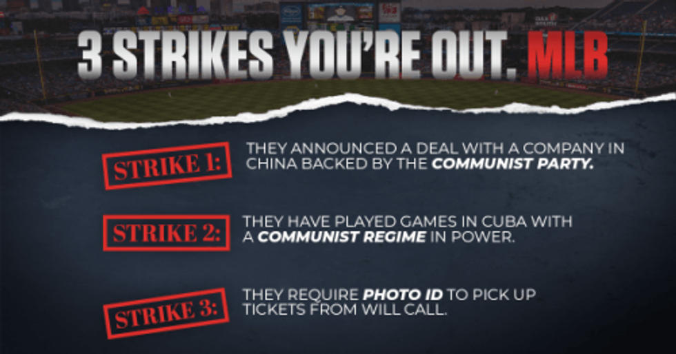 In the wake of major league baseball abandoning Georgia to protest their new voter-suppression laws, a GOP that incessantly rants about "cancel culture" has continued its death spiral with increasingly crackpot attacks on things they used to love they now want to cancel - baseball, corporations, free speech, OMG the Easter Bunny - with sinister portents pickleball, apple pie, water polo or barbecues could be next. MLB's conscientious decision to re-locate their All-Star Game and draft, made after always-dangerous "thoughtful conversations" with players and management, has shifted the focus of right-wing hysteria against all things "woke" from football - always suspect given all those black guys, never mind that SOB Kaepernick - to, shockingly, "America's game," even though it's still pretty white so you'd think it would be okay. Evidently intent on cancelling themselves by exposing their utter political and moral bankruptcy, the GOP has responded to the move with feverish and, even for them, staggeringly stupid attacks on "the liberal mob," "leftist loons," and, drawing a very wobbly line to a new deal with China to stream games, "the genocidal Communist Party of China," wait, what?! "THREE STRIKES YOU'RE OUT MLB" shrieks a GOP tweet that frenziedly goes on to list their crimes: "A deal with a company in China backed by the COMMUNIST PARTY," "They've played games in Cuba with a COMMUNIST REGIME in power," and - not The Onion - "They require PHOTO ID to pick up tickets from will call." Talk about genocidal.