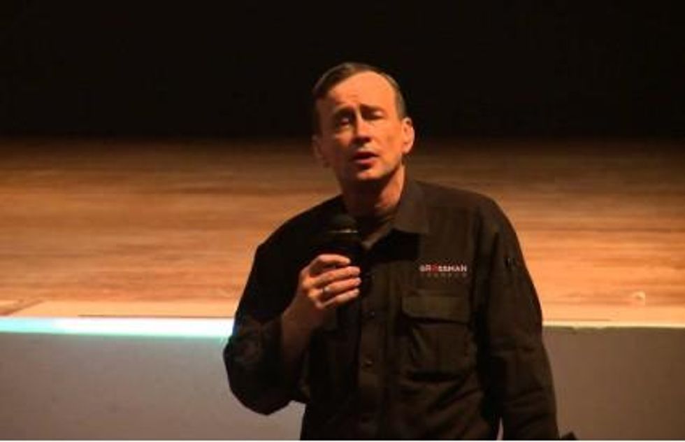 During "trainings," Grossman reinforces his ominous vision of an unrecognizably perilous country with unglued tirades about omnipresent if imaginary threats of mass shootings, terrorist attacks, armed gang-bankers and "an explosion in violent crime." Little wonder today's cops - in gear, mindset, use of deadly force - are virtually indistinguishable from military. "If this isn't war, you tell me what is," he says to one group. (Umm: war?) In his world view, even those who film the police abusing or killing are suspect via "creative editing to make police look bad," as are the media: "We are dealing with an industry functioning at the moral level of drug dealers." Given the dangers out there, Grossman often focuses on teaching police that killing any of these scumbags isn't a big deal. "Is it possible to see a gun pointed at you, draw yours, and shoot without conscious thought?" he asks an intently listening audience of hefty, buzzcut, young white guys with badges on their belts. "It's not just possible, it's highly desirable...Any natural or learned resistance to killing, any sense of the sanctity of human life, any remorse or compassion at the moment of truth can all be overcome with training." "Once you've made the decision to take a human life, you're a transformed creature - you're a predator," he says at an Ohio event. "What does a predator do? They kill...Are you emotionally, spiritually, psychologically prepared to snuff out a human life? If you can't make that decision, you need to find another job." If you take it on and suffer afterwards from PTSD, you can manage it "if you immerse yourself in the lore and spirit of mature warriors." And if you err on the side of force and get sued, don't worry: "Everybody gets sued - it's just a chance for overtime." Bottom line: "At this dark hour, our mission is to rise up and nurture the next generation of warriors."