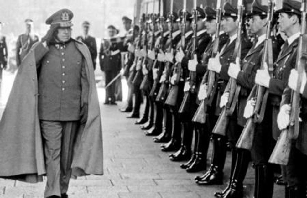 Pinochet reviews his troops