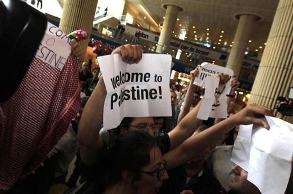 The arrested activists, all Israeli citizens, timed their demonstration to coincide with the anticipated arrival of hundreds of others hoping to travel to Palestine in a show of solidarity that some have dubbed the "flytilla," a reference to the flotilla of aid ships that were recently blocked from sailing to Gaza.