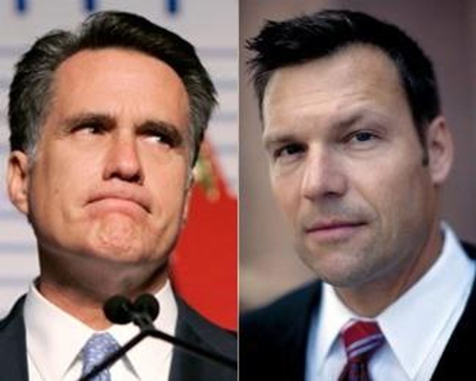 "All of the other candidates stand to the left of Romney on immigration," Kobach said. "This is an issue that people with weak backbones sometimes have trouble taking a position on, and Mitt Romney has shown some real backbone on this issue."
